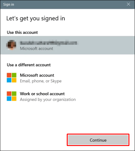 Selecione a conta com a qual deseja sincronizar e pressione o botão”Continuar”.