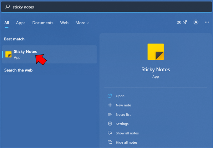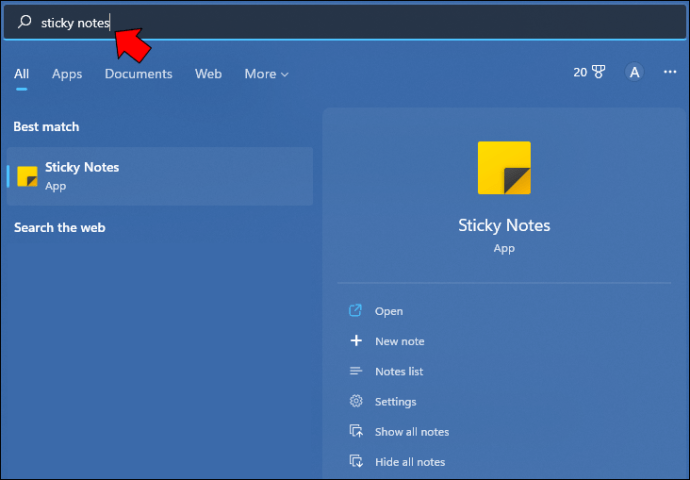 Usando a caixa de texto, digite “ Sticky Notes”e pressione a tecla Enter.