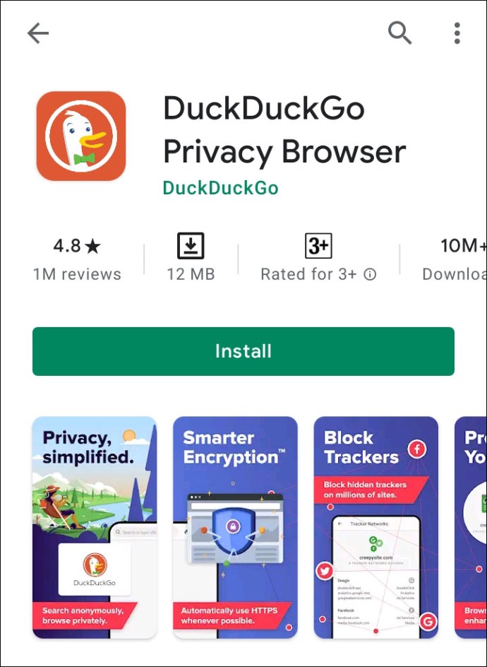 DuckDuck Go Browser. O navegador faz a mesma coisa que o Google Chrome ou o Mozilla Firefox, mas não tem anúncios pop-up.