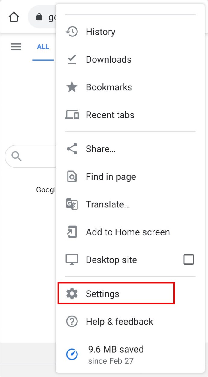 Toque no ícone de três pontos no canto superior direito canto da tela e selecione”Configurações”no menu suspenso.