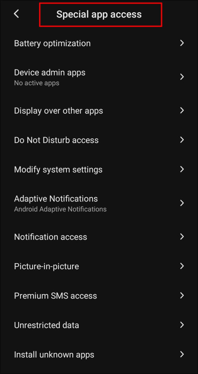Navegue até”Aplicativos e Notificações”e toque em'”Avançado”e depois”Acesso especial ao aplicativo”.