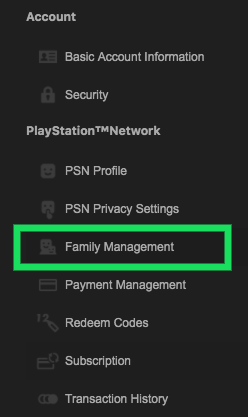 =”_blank”href=”https://id.sonyentertainmentnetwork.com/signin/?ui=pr&response_type=token&scope=openid%3Auser_id%20openid%3Aonline_id%20openid%3Actry_code%20openid%3Alang%20user%3Aaccount.communication.get% 20kamaji%3Aget_account_hash%20oauth%3Amanage_user_auth_sessions%20openid%3Aacct_u uid%20user%3Aaccount.authentication.mode.get%20user%3Aaccount.phone.masked.get%20user%3Aaccount.notification.create%20openid%3Acontent_ctrl%20user%3Aaccount.subaccounts.get%20openid%3Aage%20user%3Aaccount. graduar%20can%3Acontext.user.get%20can%3Acontext.user.set%20user%3AverifiedAccount.get%20kamaji%3Aaccount_link_user_link_account%20kamaji%3Aget_internal_entitlements%20ias%3Aaccount.onlineIdChange.get%20user%3Aaccount.onlineId.get%20user% 3AonlineIdSuggestion.get%20kamaji%3Aactivity_feed_set_feed_privacy%20user%3Aaccount.identityMapper%20user%3Aaccount.email.create%20user%3Aaccount.emailVerification.get%20user%3Aaccount.personal.get%20user%3Aaccount.tosua.update%20device%3Aget% 20device%3Aupdate%20device%3Aactivate%20openid%3Aacct_id_str%20deviceManagement%3Adevices.deactivateAll%20digitalRightsManagement%3ApremiumServices.update&redirect_uri=https%3A%2F%2Fid.sonyentertainmentnetwork.com%2Fid%2Fmanagement%32F%23%2Fp%3Fpr_referer% 26entry%3D%252Fp&client_id=ce381e15-9cdd-4cf9-8384-0 cf63db17f6a&state=e8709dc7d56f70725ae7223a18addd0&entry=%2Fp&error=login_required&error_code=4165&error_description=User+is+not+authenticated&no_captcha=true#/signin?entry=%2Fsignin”>Site da Sony. Uma vez lá, toque em Gerenciamento da família. no menu lateral.