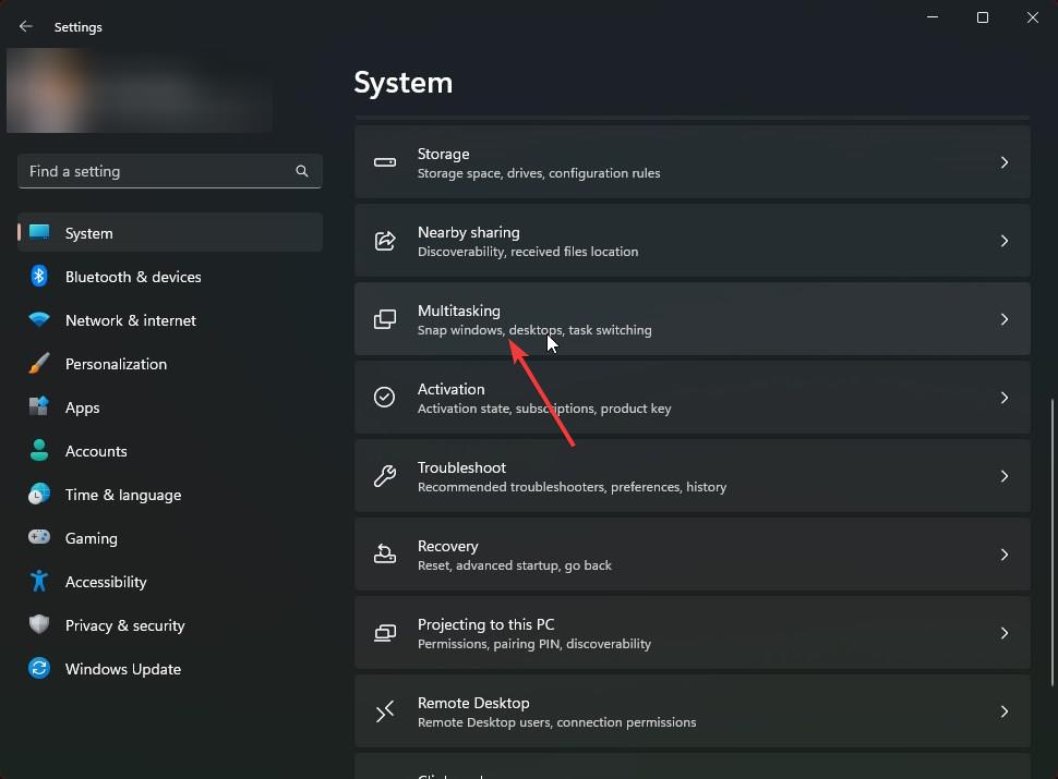 No painel esquerdo, localize e selecione a opção”Multitarefa”.