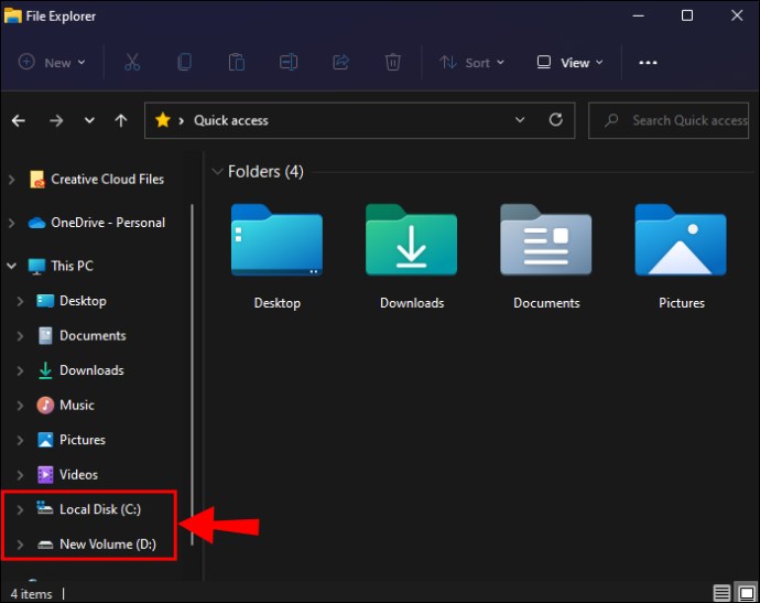 Depois de abrir o Explorador de Arquivos, você deverá ver uma lista de todos os unidades em seu computador, incluindo seu disco rígido.