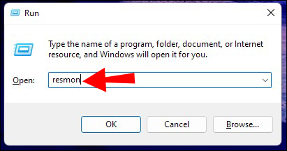 Digite “resmon” e pressione “Enter”. Isso abrirá a janela do Monitor de recursos.