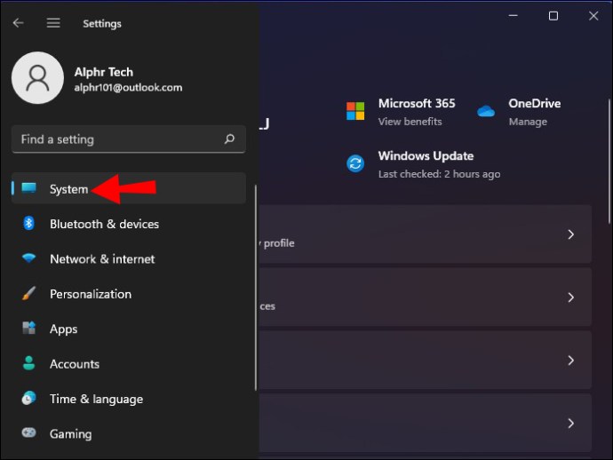 Na janela Configurações, selecione a opção”Sistema”.