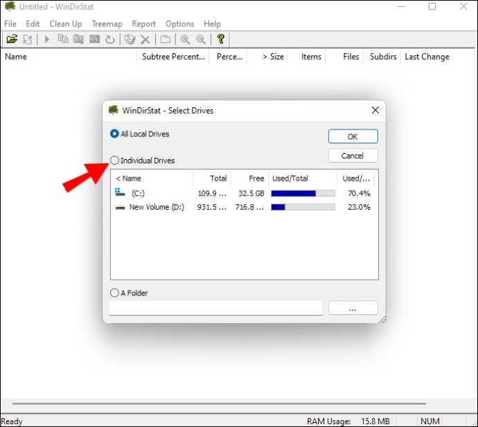 Depois de instalar o WinDirStat no Windows, você pode prosseguir para inspecione o uso do disco rígido: