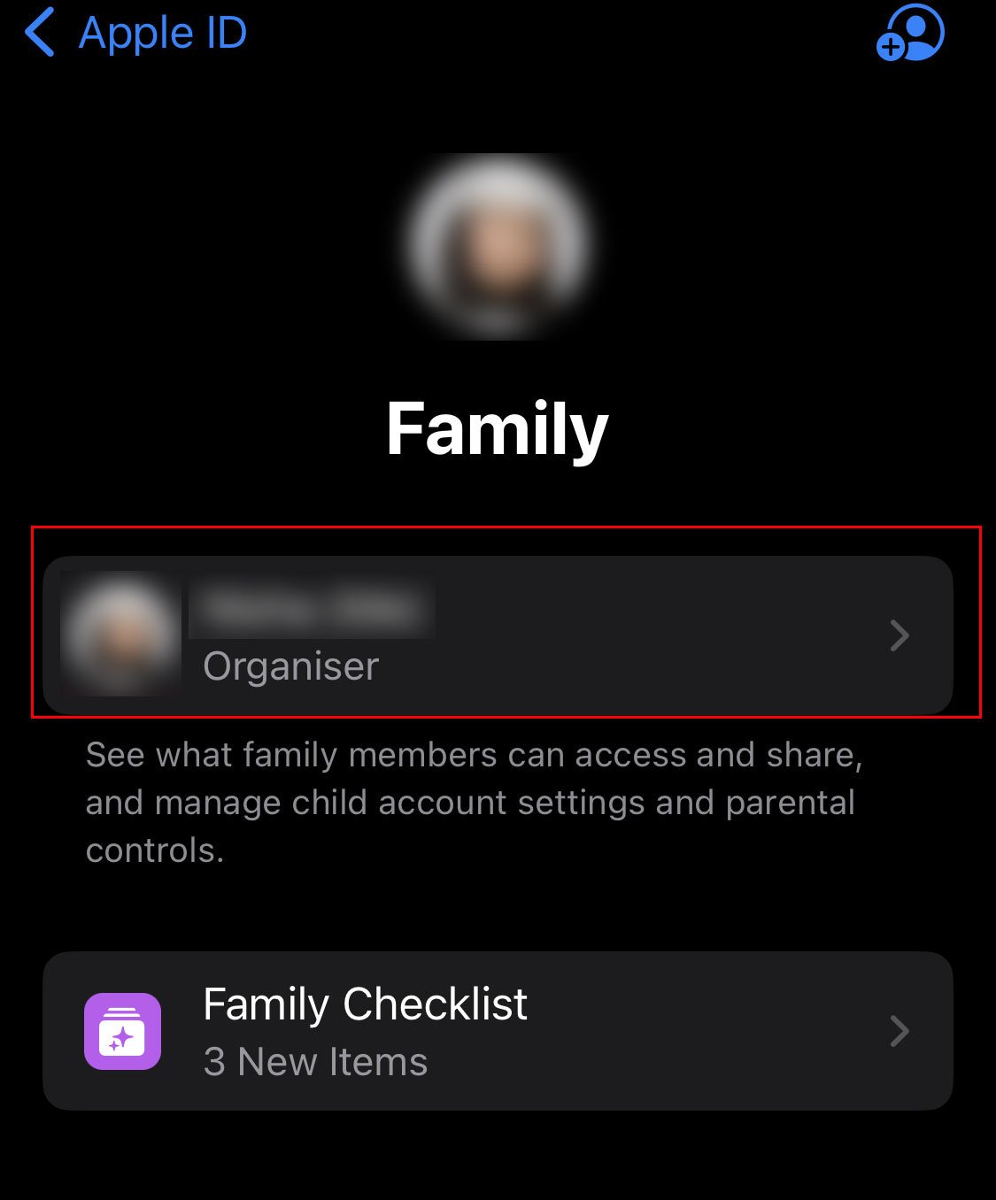 Vá para ConfiguraçõesToque no seu nome e selecione Compartilhamento com a família.