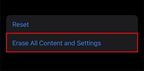 Selecione o Opção Apagar todo o conteúdo e configurações.