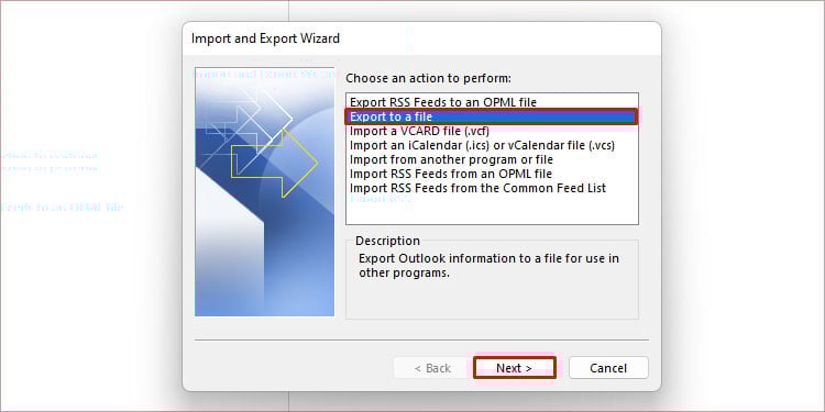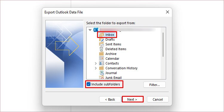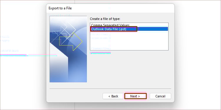 Você pode transferir seus e-mails, links e mídia para uma conta diferente do Outlook exportando e transferindo arquivos PST de sua conta do Outlook. Você pode exportar um arquivo PST de uma conta do Outlook seguindo o método mencionado abaixo.