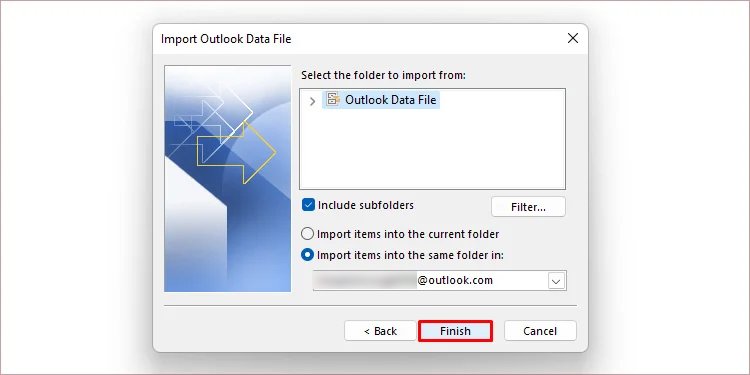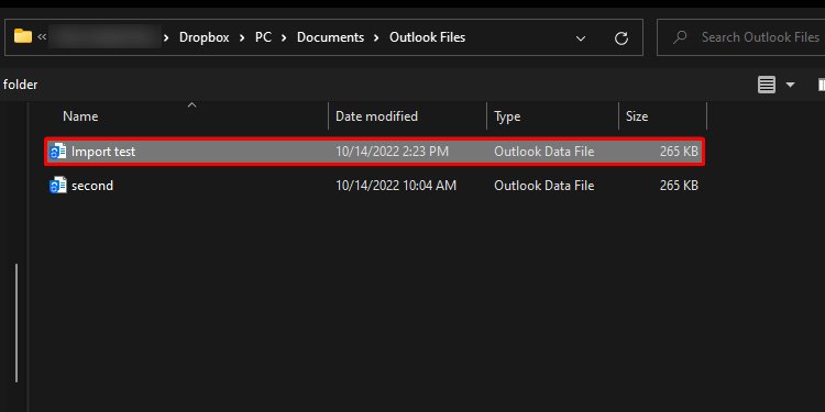 Quando você importa PST por meio da opção Arquivo de dados do Outlook, os emails permanecem em uma pasta separada de seus emails pessoais.