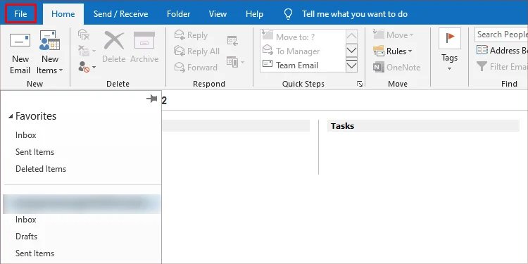 Abra o Outlook em seu dispositivo.Clique em Arquivo no canto superior esquerdo.