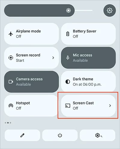 Agora, desbloqueie seu smartphone e permaneça na tela inicial.Deslize de cima para baixo para Centro de controle menu.Escolha Screen Cast.