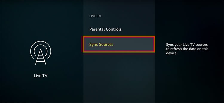 Inicie Configurações Clique em TV ao vivo > Fontes de sincronização