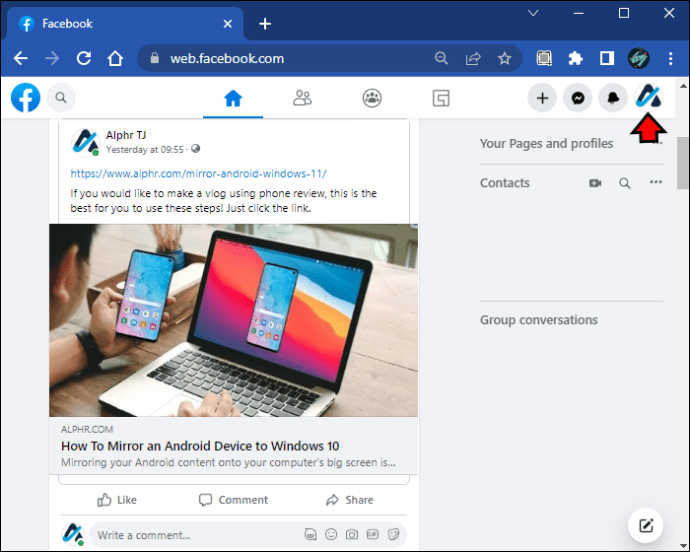 Clique na foto do seu perfil no canto superior direito da página inicial do Facebook.