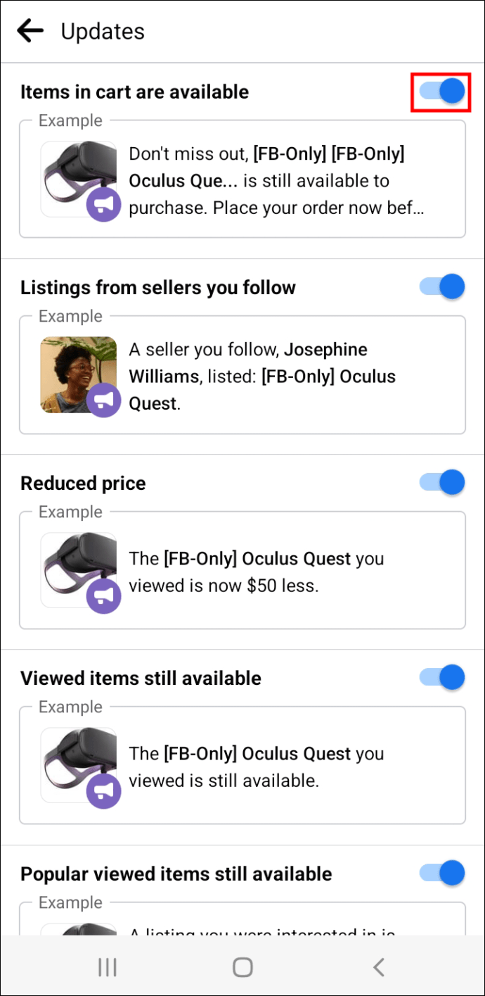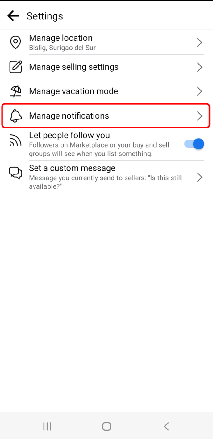 Configurar alertas do Facebook Marketplace no aplicativo Android