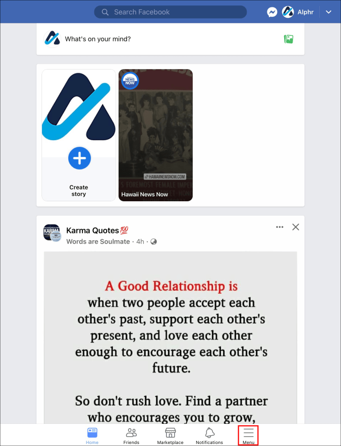 Abra o aplicativo do Facebook e toque nas reticências (três linhas horizontais) no canto inferior.