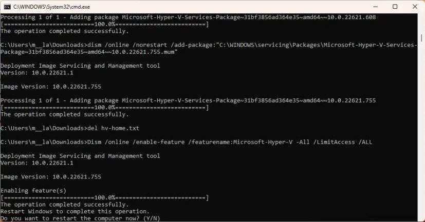 Depois de concluir as etapas, o Microsoft Hyper-V será desativado no Windows 11 Home.