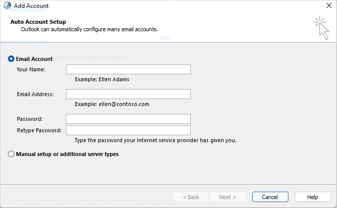As versões mais recentes do Outlook, como Outlook 2016, Outlook 2019 ou Outlook para Office 365, permitem adicionar um novo conta com Criação de conta simplificada. Embora seja relativamente mais fácil, onde você só precisa digitar e-mail/senha, e o Outlook lida facilmente com o arquivo PST, às vezes você pode experimentar o erro acima.
