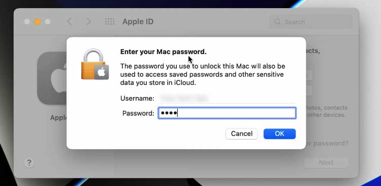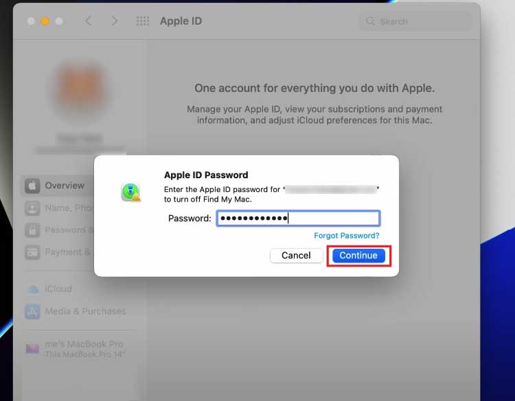 Digite a senha do seu ID Apple anterior. Clique em Continuar.