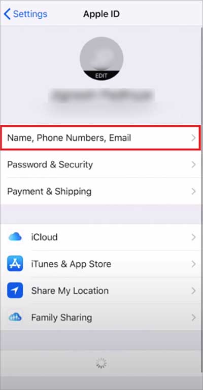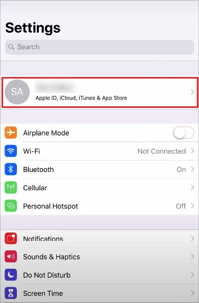 Vá para o aplicativo Configurações.Clique no seu nome na parte superior da tela do celular.