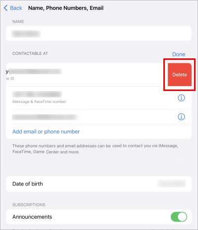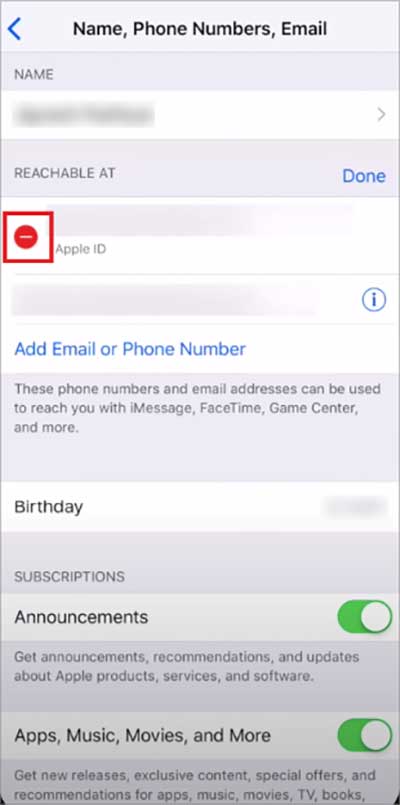 Toque no botão Red menos no lado esquerdo do seu ID Apple atual.
