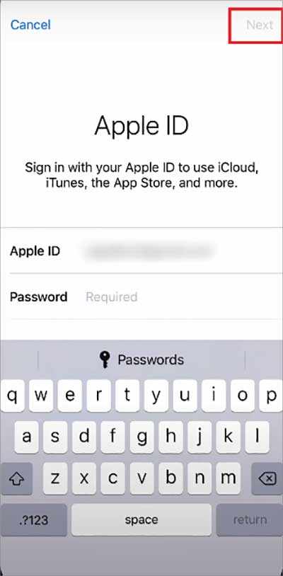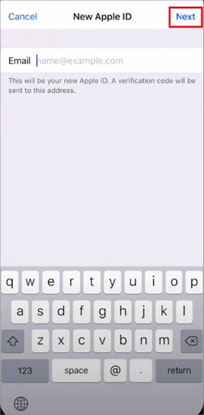 Enter seu novo ID de e-mail.Toque em Próximo.