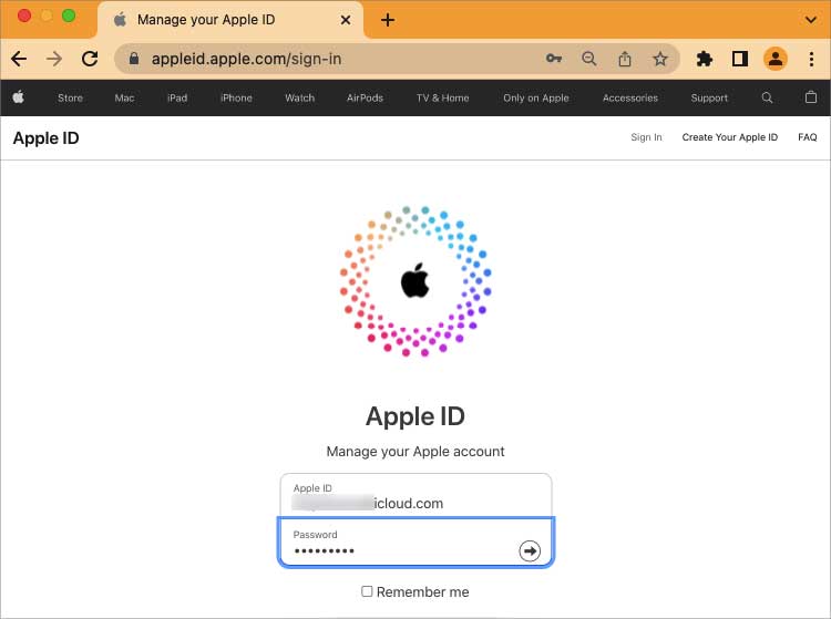 Vá para o Apple Sign-in no navegador. Faça login com seu e-mail e senha do ID Apple.