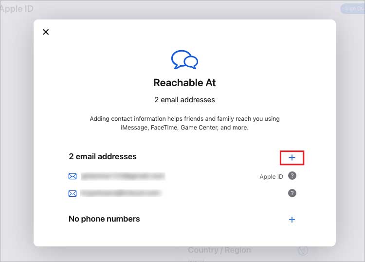 Clique no ícone + de adição ao lado do endereço de e-mail.