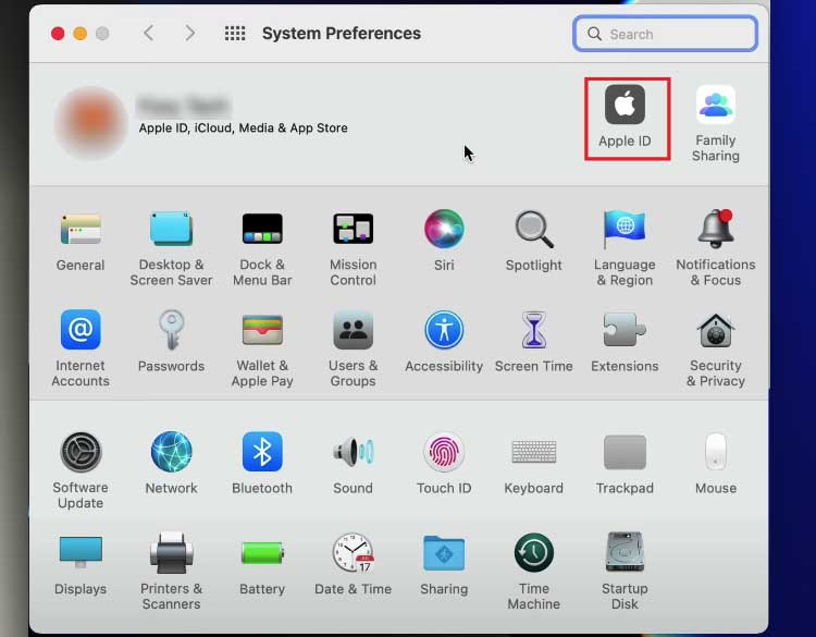 Vá para a opção Apple ID.