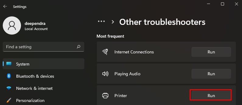 Uma ferramenta integrada de solução de problemas de impressora no Windows também ajuda a determinar se houver algum problema com a impressora. Ele diagnosticará e sugerirá correções que ajudarão a resolver o problema.