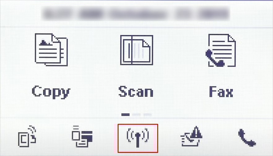 Navegue até o painel de controle da impressora.Toque no botão Sem fio no painel de toque da impressora.