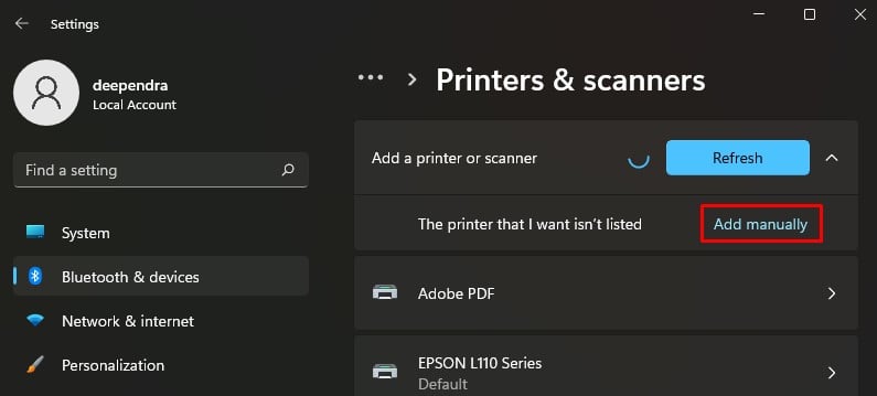 Se houver algum erro durante a instalação da impressora, isso pode impedir que o PC de encontrar a impressora. Você pode remover o perfil da impressora e adicioná-lo novamente. Adicionar novamente a impressora pode ajudar seu PC a descobrir se alguma falha o impede de fazê-lo.