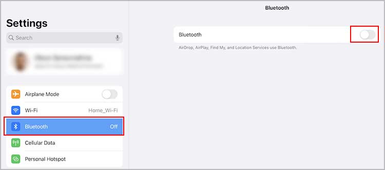 Abra o menu Configurações do iPad. Em seguida, toque em Bluetooth. Desative o botão ao lado de Bluetooth.