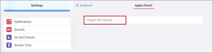 O problema de conectividade é outro obstáculo ao conectar o Apple Pencil ao iPad. Isso faz com que seu iPad funcione mal e não permite que o lápis se conecte. Assim, você pode desemparelhar seu lápis e tentar o processo de emparelhamento novamente.