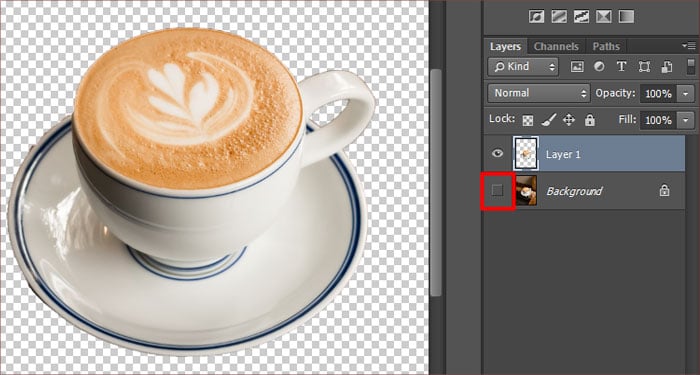 Clique no ícone de olho ao lado da camada de plano de fundo para desativar sua visibilidade.