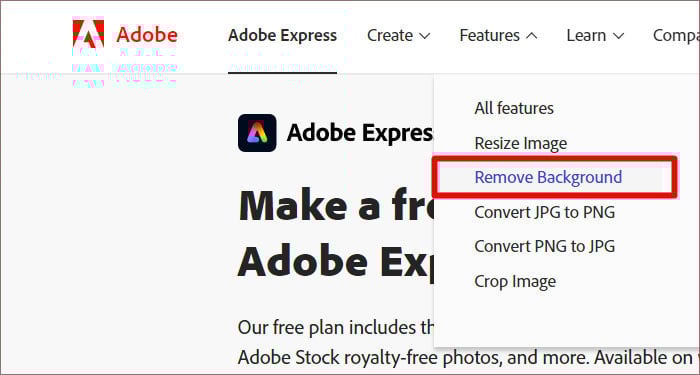 O Adobe Express é de longe o método mais fácil que você pode usar para tornar sua imagem transparente. É uma ferramenta gratuita de processamento de imagem que usa processamento de imagem AI para separar e remover a parte de fundo da imagem, tornando-a transparente. Torne as imagens transparentes por meio do Adobe Express seguindo as etapas abaixo: