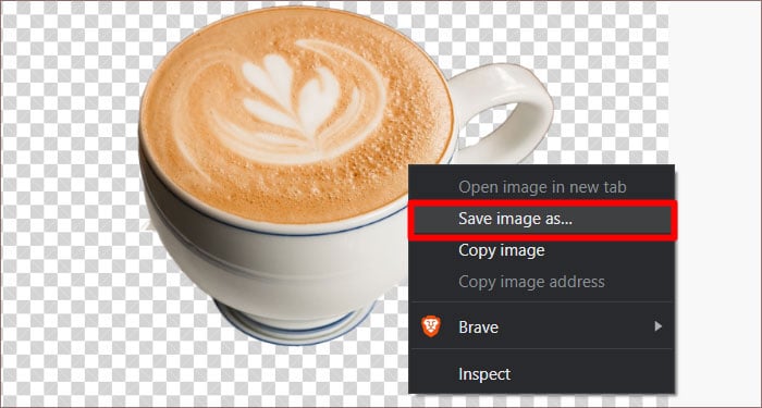 Navegue até o local da imagem e clique duas vezes na imagem que você pretende editar. A imagem será exibida com um fundo quadriculado após a conclusão.Clique com o botão direito na imagem e clique em Salvar imagem como.
