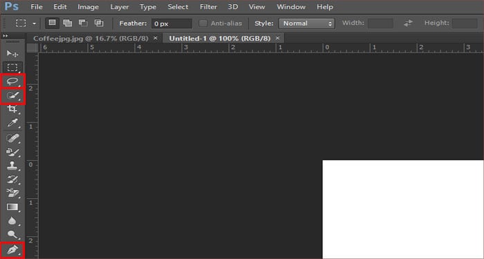 Abra o Photoshop. Pressione Ctrl + O, depois clique duas vezes na imagem que deseja editar. Faça sua seleção através das várias ferramentas fornecidas. Você pode escolher a ferramenta Seleção , a ferramenta Laço ou a ferramenta Caneta .