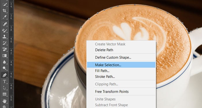 Se você estiver usando a ferramenta Caneta : trace ao longo da borda da imagem de primeiro plano.Direita-clique na imagem e selecione Fazer seleções.