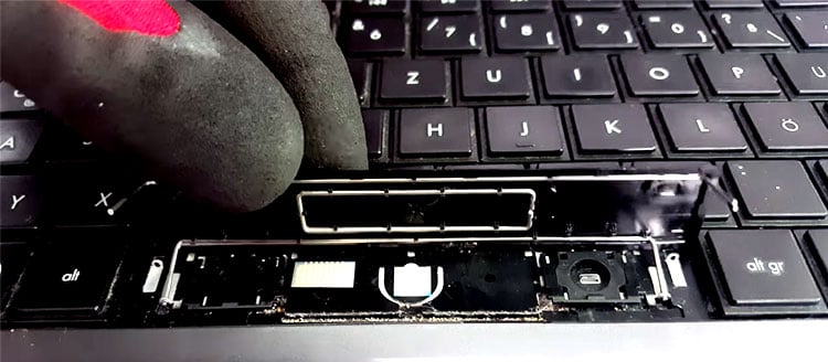A membrana geralmente é presa ao teclado usando cola, então você precisa ter cuidado para não puxá-la ou rasgá-la. O clipe de retenção é composto por duas partes e possui quatro pinos de metal para prendê-lo ao teclado. a chave e veja se algum dos entalhes está quebrado. Para fazer isso, você pode comparar todos os entalhes ou comparar a tecla com outras teclas do teclado.