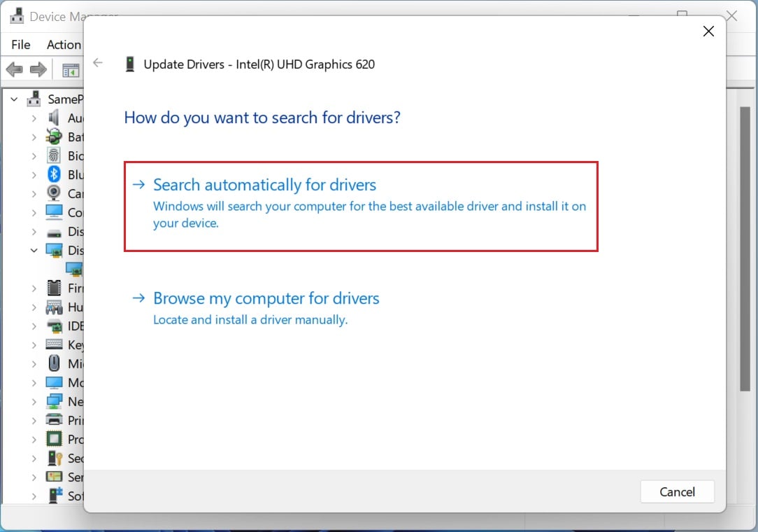Uma vez em uma nova janela aparecer, toque na opção Pesquisar automaticamente por drivers.