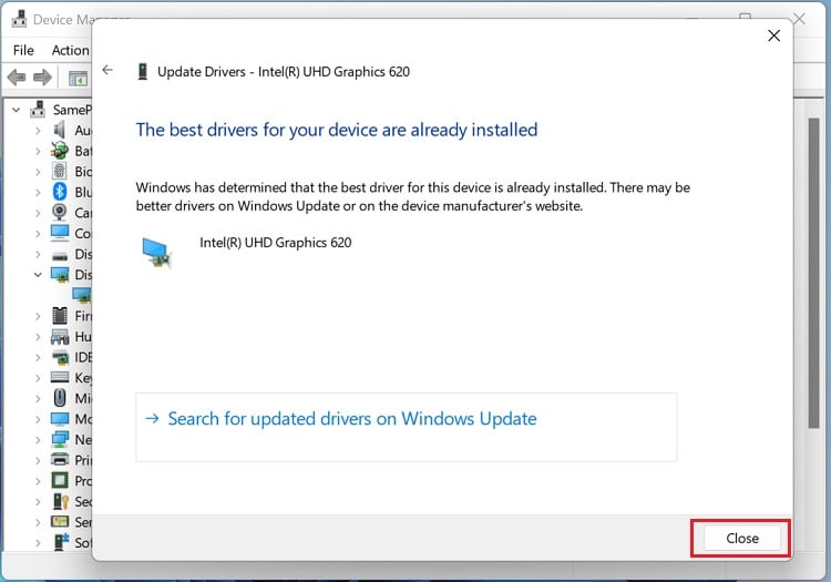 Aguarde até que os adaptadores de vídeo mais recentes sejam instalados no seu PC. Feche a caixa de diálogo e espere para ver se o erro ainda ocorre.