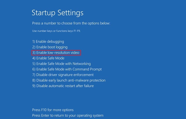 Se o seu PC não iniciar no modo de segurança, você pode tentar inicializar no modo de vídeo de baixa resolução, também conhecido como modo VGA. Basicamente, isso iniciará o Windows em baixa resolução (normalmente 640×480), cujo sinal é suportado pela maioria dos monitores.