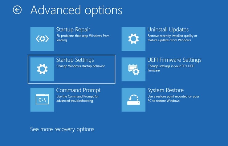 Em primeiro lugar, forçar a reinicialização do computador e imediatamente use o botão liga/desliga para desligar seu PC.Repita a etapa três a quatro vezes, o que deve iniciar o reparo automático.Na janela Reparo Avançado, pressione a opção avançada para entrar no Ambiente de Recuperação do Windows.