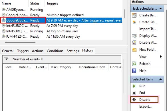 O GoogleUpdateTaskmachineUA é outro programa conhecido por causar esse problema. Esta tarefa funciona para encontrar atualizações para o software do Google que você instalou em seu sistema. Desabilitar também deve corrigir o problema.