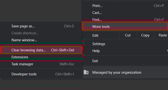 Passe o mouse em Mais ferramentas e clique em Limpar dados de navegação. Você também pode acessar este menu com a tecla de atalho Ctrl + Shift + Del .