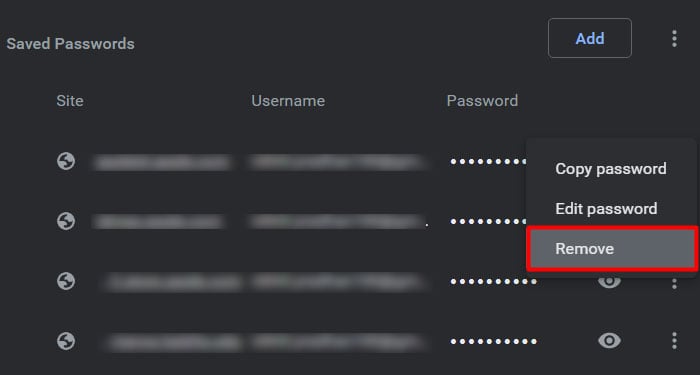 Para senha:Clique em Gerenciador de senhas. Clique no ícone de três pontos verticais ao lado da senha salva.