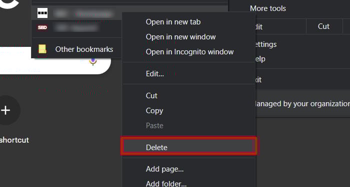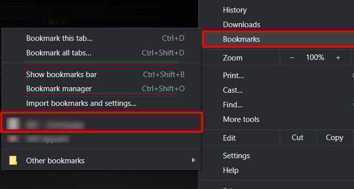 Sugestões de preenchimento automático de URL ainda podem aparecer se você salvou o URL como um marcador. A única maneira de remover esse preenchimento automático é excluir o marcador. Exclua os favoritos do Chrome seguindo as seguintes etapas: