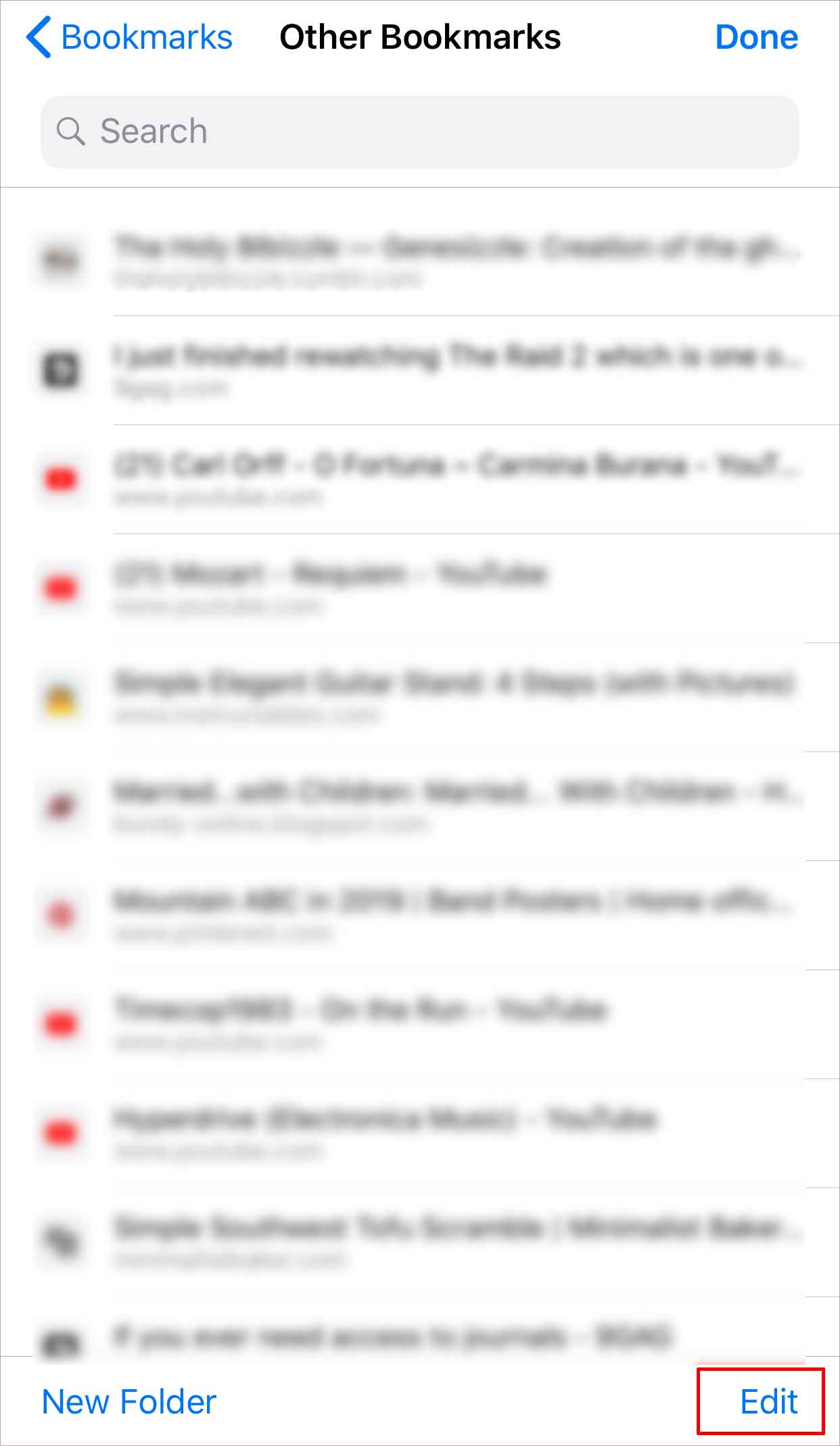 Navegar através da pasta de favoritos.Toque em Editar. Para Android, toque no ícone de três pontos ao lado de um favorito e toque em Editar.